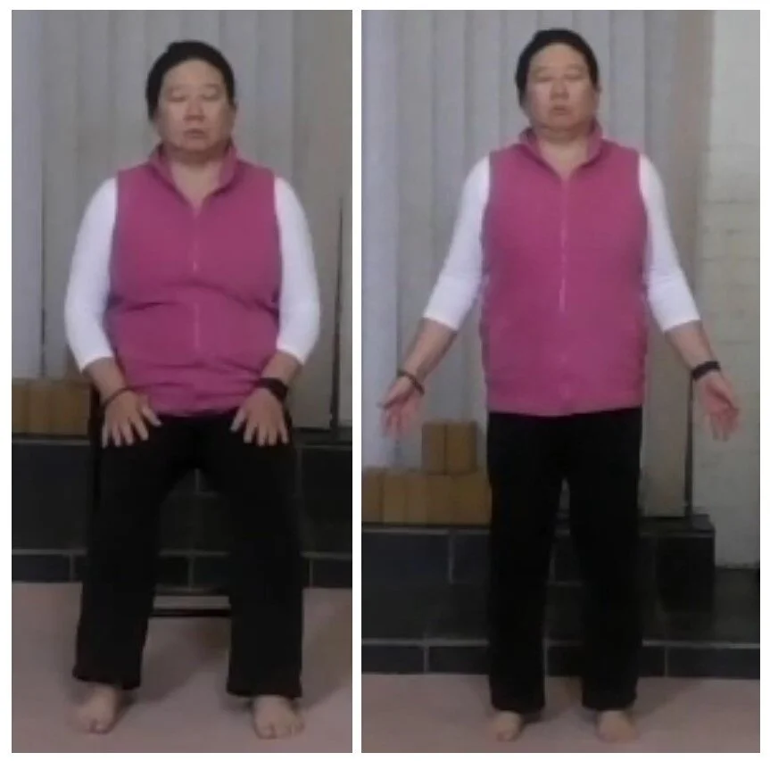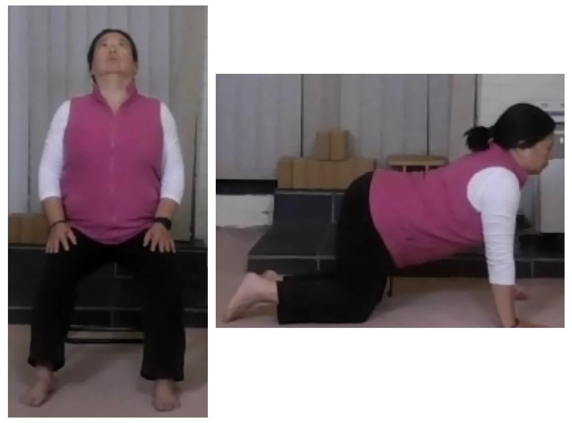If sitting in a chair, sit towards the front of the seat with the hands resting on the thighs and feet flat on the floor or support.