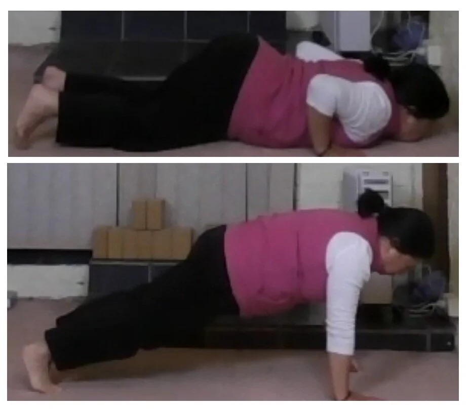 Feel that the body is in one straight line from the knees or feet, to the head.
